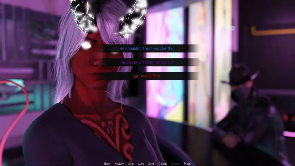 * Pink (Flirting): The romantic path. Used to pursue deeper connections and unlock those coveted intimate scenes.